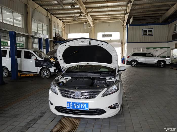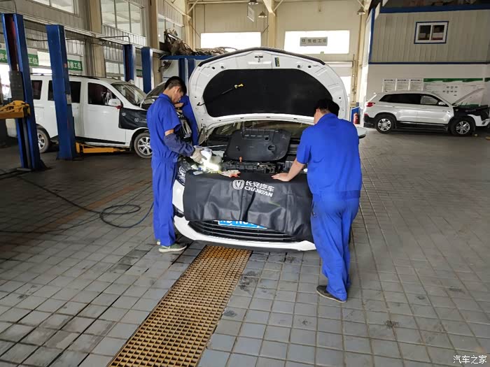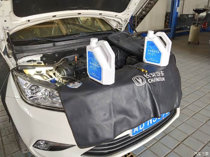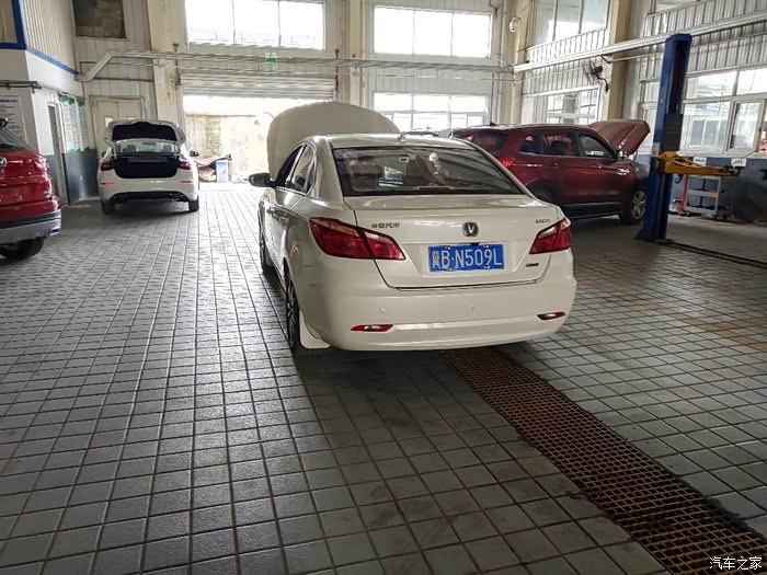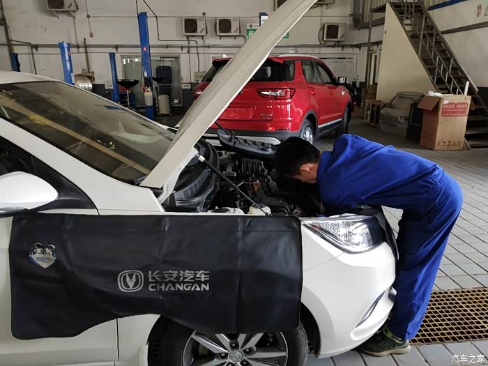 来到长安4S店内的保养维修车间,此次更换防冻液用不到升降架,就没有上工位台。
