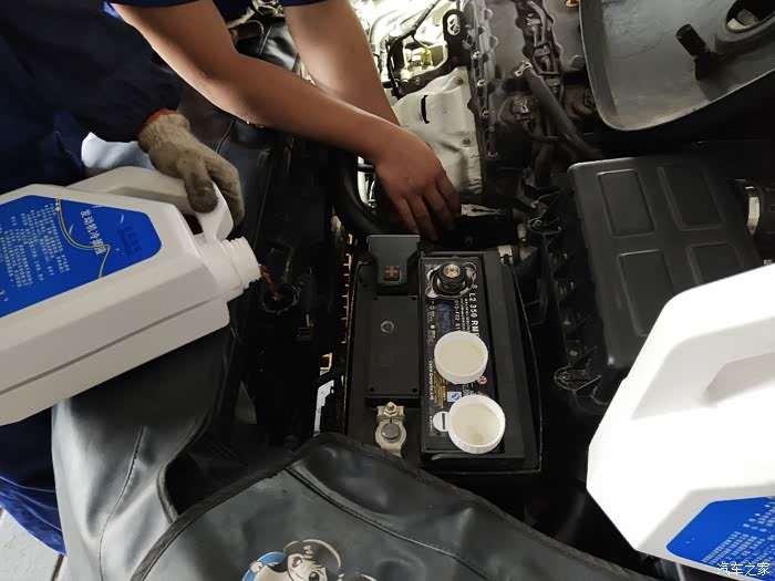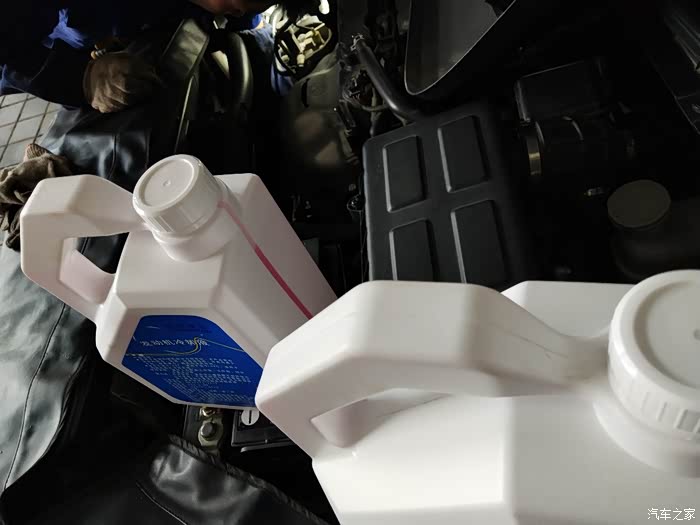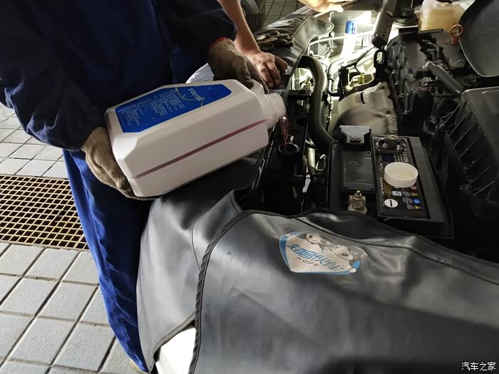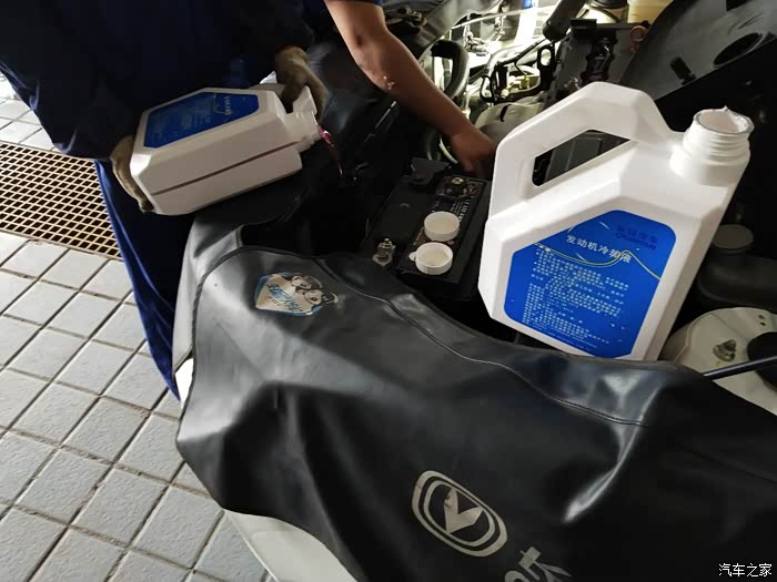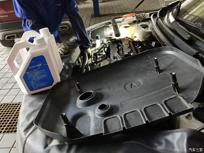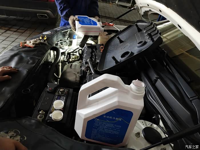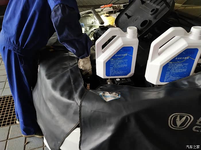 不一会儿,更换防冻液已经进入尾声了。维修师傅说要让发动机怠速工作一段时间,在观察一下。