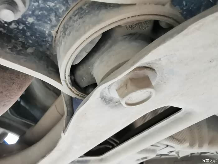 下摆臂机脚胶坏了,已经磨到上面了,斜的,容易吃胎了,要马上更换,这个只有去4S换好些!
