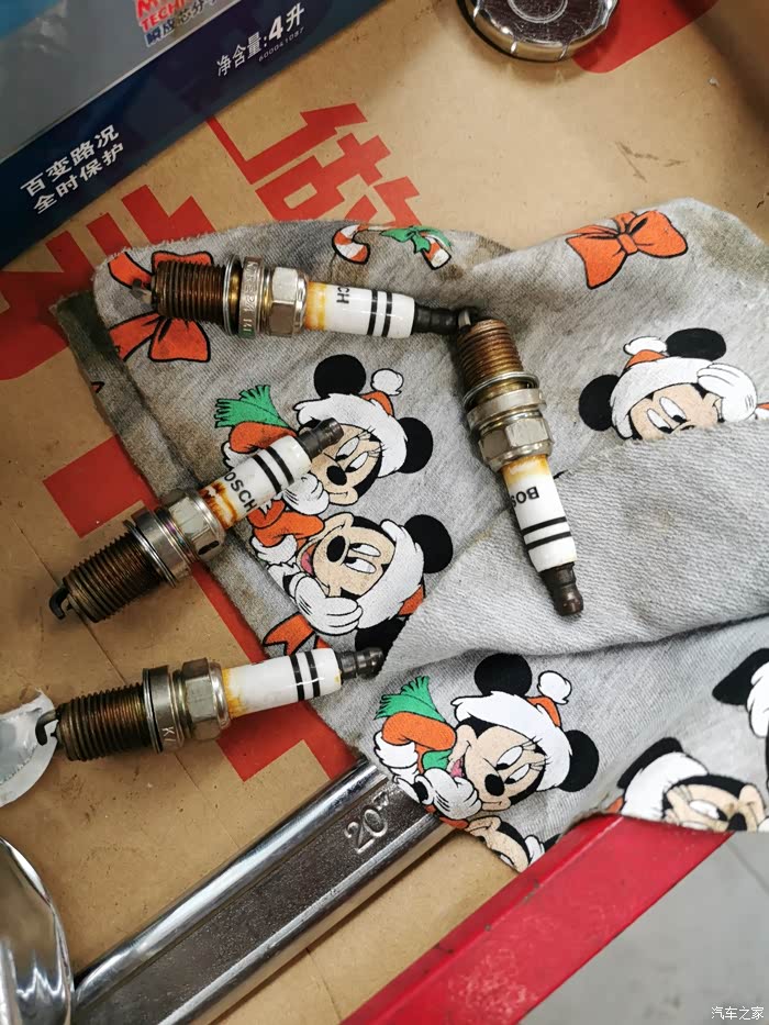 原装的火花塞是博世的,感觉没有多黑,还能用,我收好带回来了!