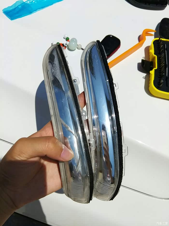 一个多月前,会车的时候被对面越线车刮到后视镜,后面发现后视镜转向灯那个位置有裂缝,接着遇见下雨天,里面就凝结小水珠了。