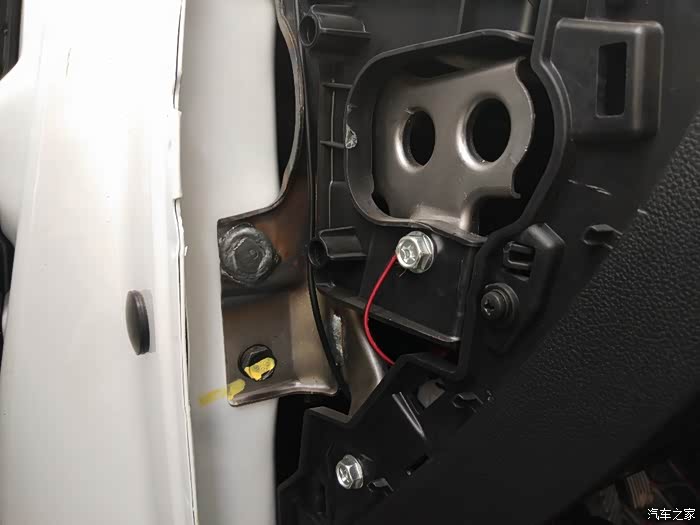 打开主驾驶的门,把密封条拽下来,然后用工具把a柱的内饰挡板翘下来,把电源线隐藏在里面。