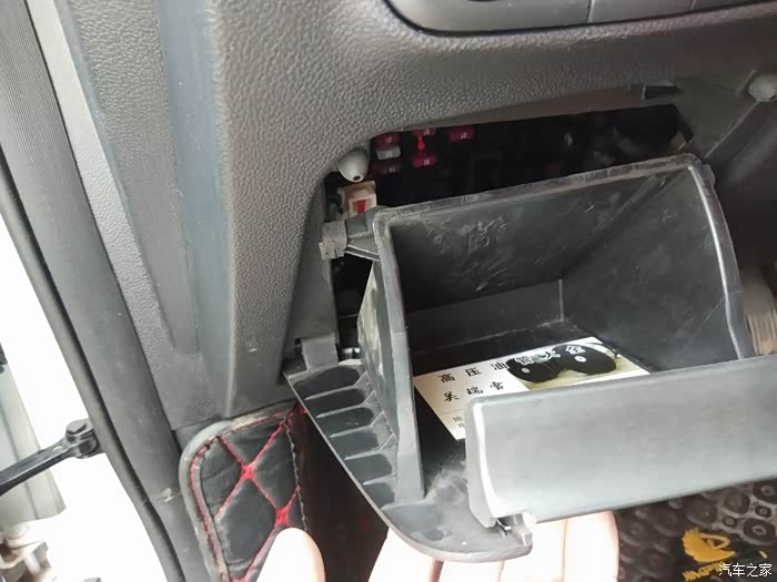 隐藏到中控台附近的时候,把主驾驶左侧的手兜拿下来,打开用力往上提便可拿下来。