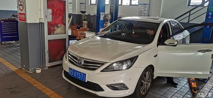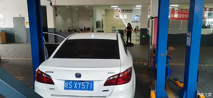 到达4S店,由于是预约了的,到达位置后,直接把小逸停放在维修工位上,