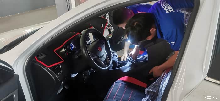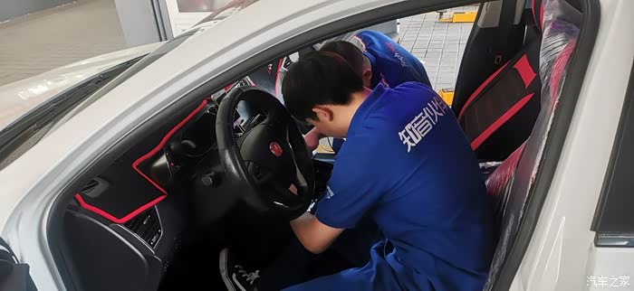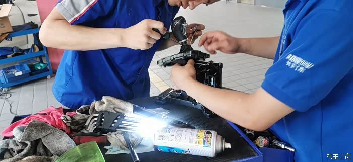 可能由于车内光线的问题,维修师傅打开手机电筒,以便更好的观察,