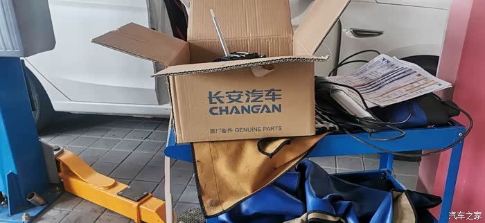 维修师傅把心的换挡机构拿来,准备更换,长安汽车四个大字,确保了这是原厂的换挡机构,