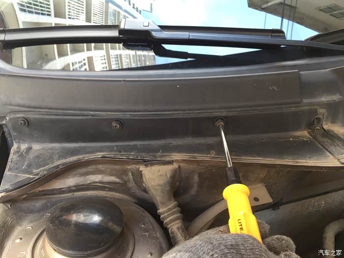 打开引擎盖,拆开胶条,拆罗丝