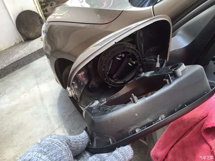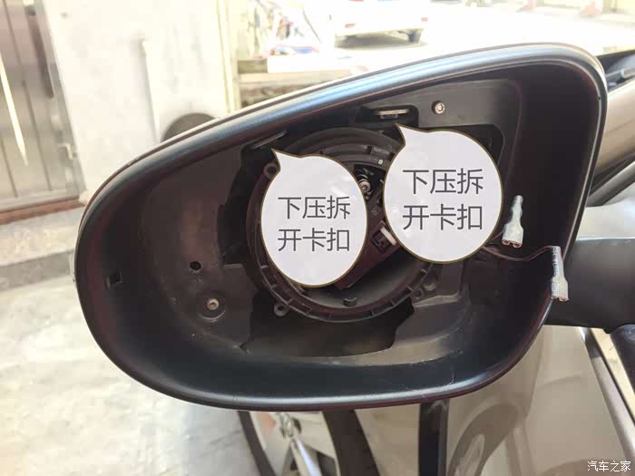 看图片上的文字,接着就大胆撬后视镜片吧。只是几个卡子卡着的