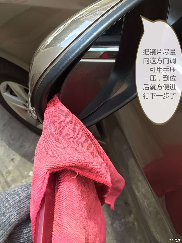 用布包上塑料撬棒,以防撬坏后视镜