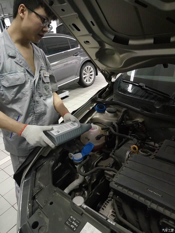 这是在加防冻液么。。。不记得了。。原谅女司机分不清。。。
