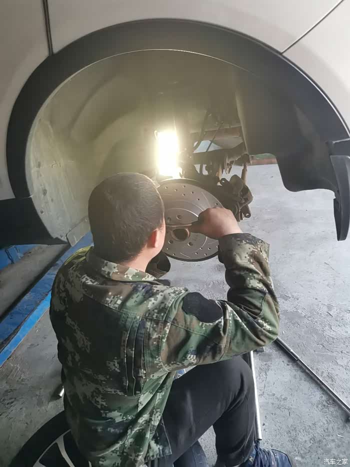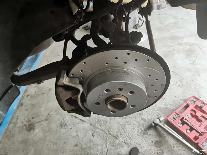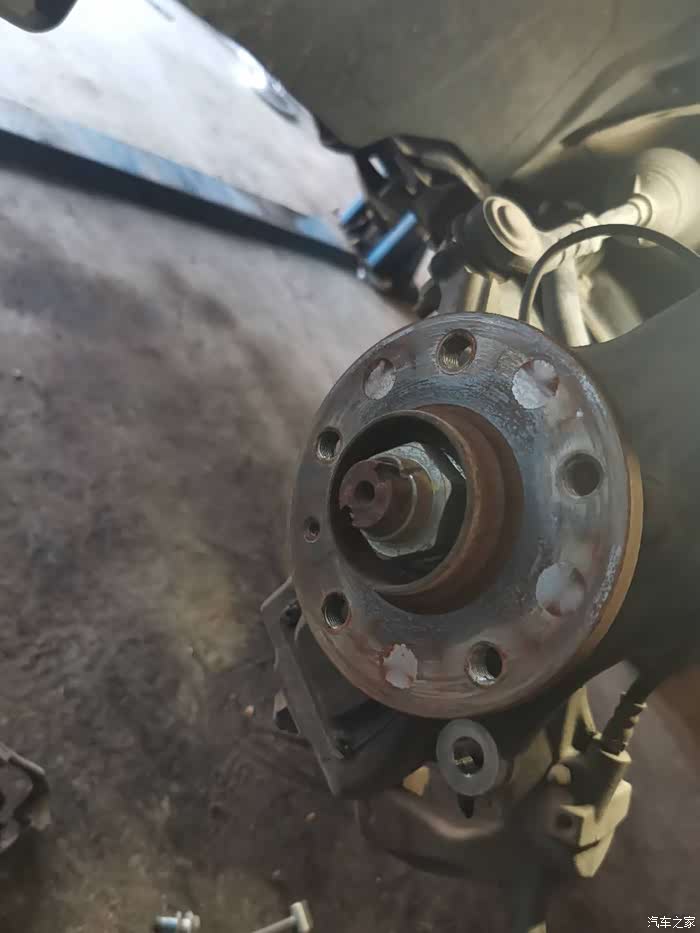 左后轮刹车盘和片更换完毕,两个后轮最难更换,手刹是电子手刹,相对费时间,
