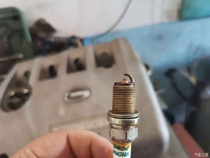 本次更换火花塞,这个是拆下来的,已经快不成了。