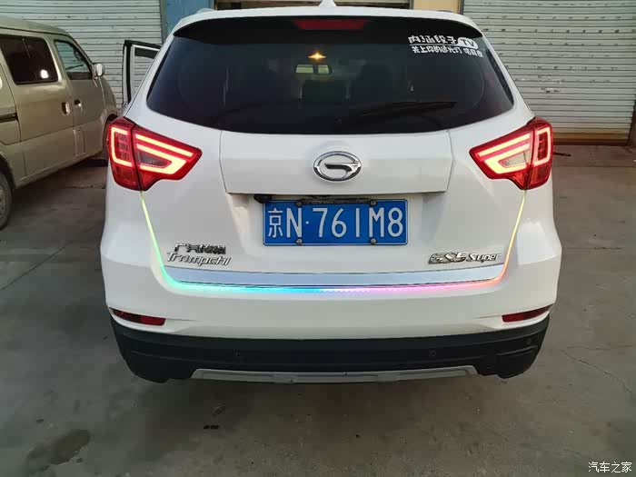 后摄像头和尾箱流光灯,踩刹车,全红;平时行车流光七彩;左右转向,黄色流光,左转,左流光;右转,右;流光。原来是安装在后玻璃下面的,结果一刹车,后视镜什么都看不到,只能看到一片红,就给安在后门下面了。