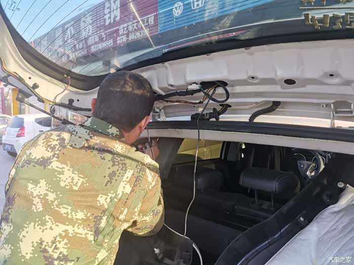 师傅正在走线,流光灯的和后摄像头的。大哥修车手艺不错,十几年的老店了,人也很好。自从出保以后,就一直在他家做保养。