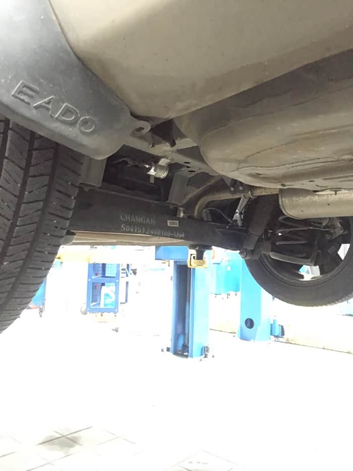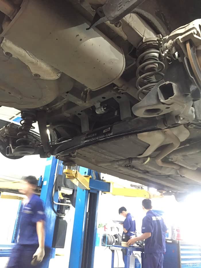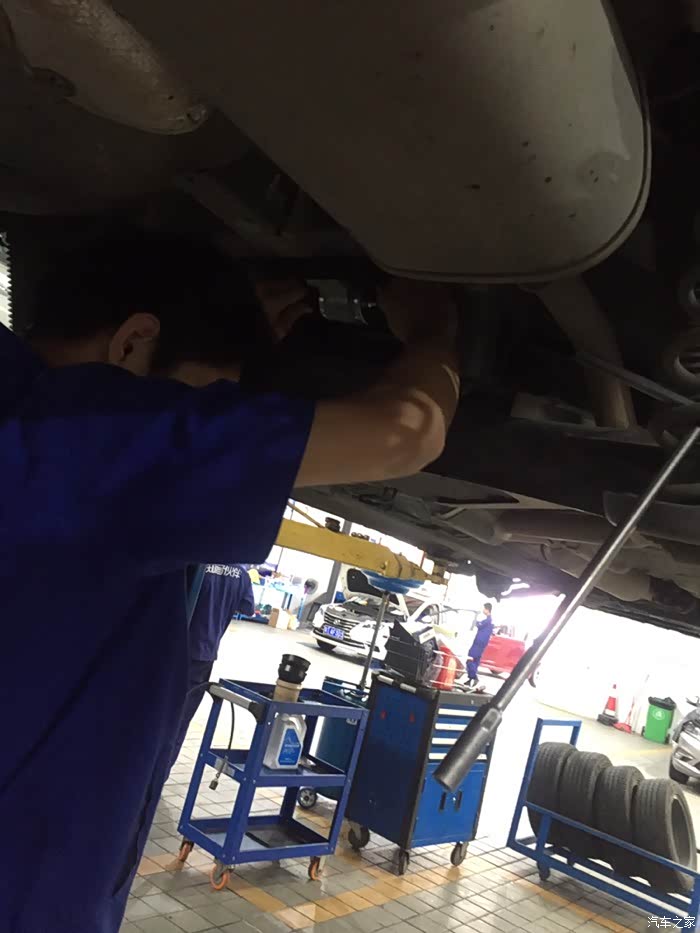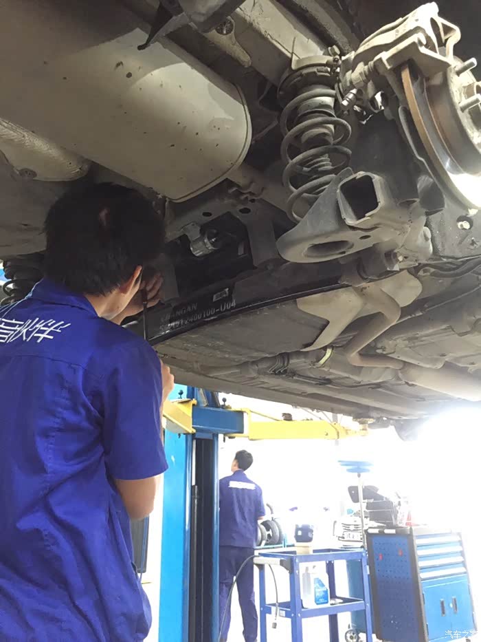 说干就干,升起车,拆旧配件,没想到还把我轮胎拆下来检查,4s服务还不错哈!