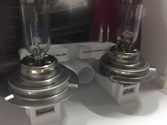 最坑爹的灯泡来了,看到两条蓝色的线没?还有灯头的冒,可能就是唯一和原厂车灯不同的地方吧。这不是最坑爹的打开包装,发现灯泡取不下来。里边有个卡子,卡住了灯泡的托上的金属片。之前所有的工作加一起十分钟,取灯泡半个小时!我废了九牛二虎之力,最后求助的客服。客服告诉我使劲往上拽!***,你们这么设计有考虑过用户的感受吗?拽坏了算谁的?一边拽还得往外倾斜一点,把卡子让出来。拉了十分钟,终于给拿出来了!