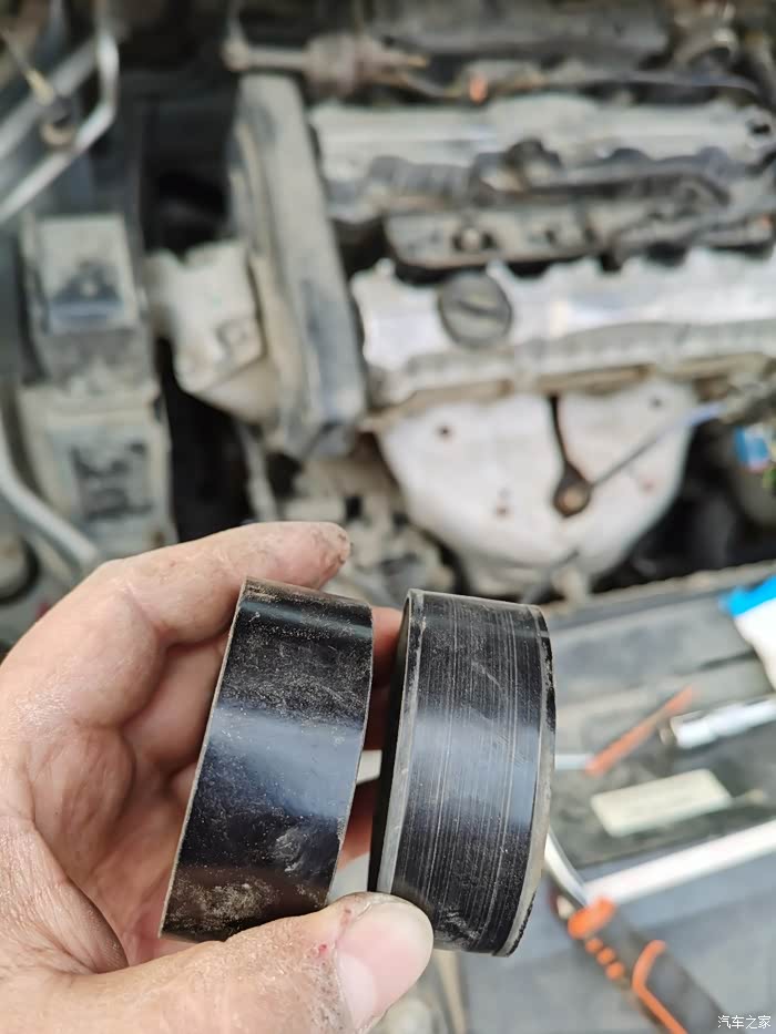 目前行驶14万多公里,去年升级了6速,油耗7个左右。9万多公里的时候更换了正时皮带,因为13款后的1.6升发动机都升级了CVVT可变气门技术,升级了电子液压助力,取消了机械助力泵,所以空调发电机皮带就没更换,本着节约不浪费,就是皮带断了,也能开到就近修理厂,最近发现皮带有裂纹,在家没事打算自己更换,网购皮带,涨紧轮,工具自己有,因为自己两辆车,保养换油,都是自己搞,废话不多说了上图。