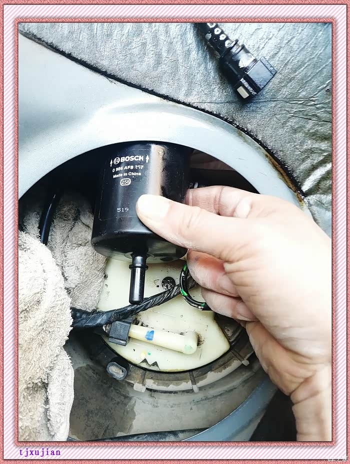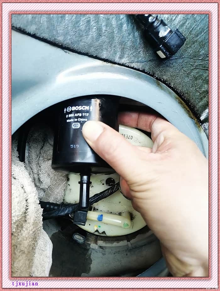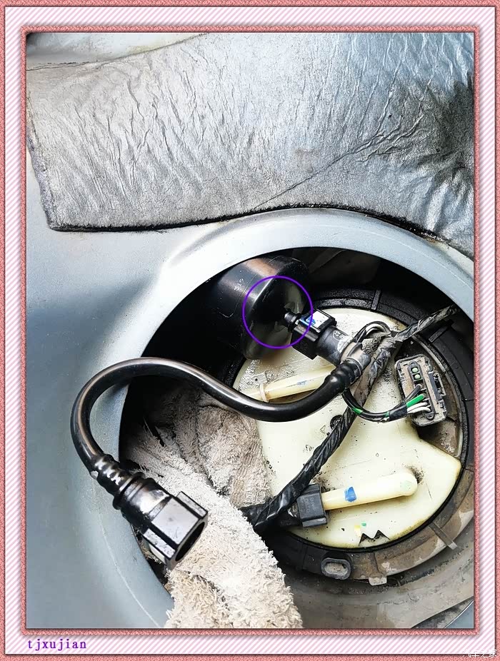 一切都收拾完后,先不要急于把后座恢复了,先拧钥匙打开电源,但不启动,看看汽油滤芯的进出油管是否有漏油迹象,一切没有问题后再把后座恢复好就可以了,更换汽油滤芯作业完成。