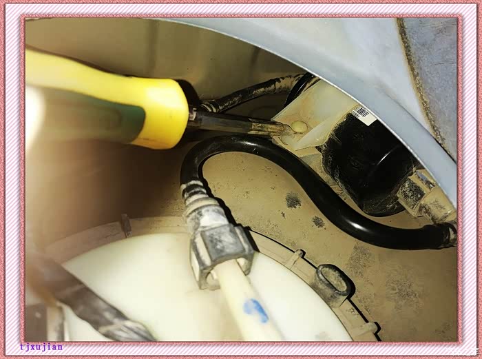 连接汽油滤芯的两根油管是软管,但长度有限,操作起来有点难度。