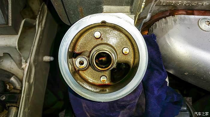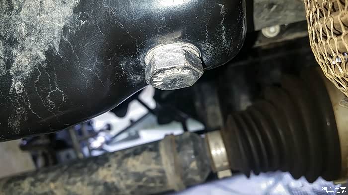清洁一下放油螺丝的四周,准备拆卸了。大家注意:拆卸时不要使用扭矩扳手,且要戴上防护手套,防止烫伤。
