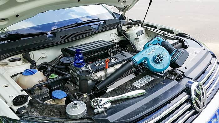 还是采用热车放油,因为它比较彻底,但要注意不要烫伤。重力放油结束后,我又采用吹风机强制吹出残留油液,最终机油加注量为3.8升多一点,是我所有换油作业中最为彻底的一次。
