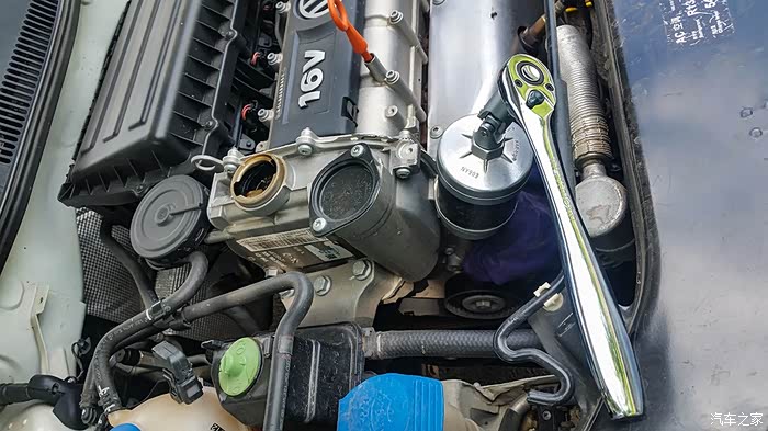 打开机油盖子,拧松机滤,准备放油。