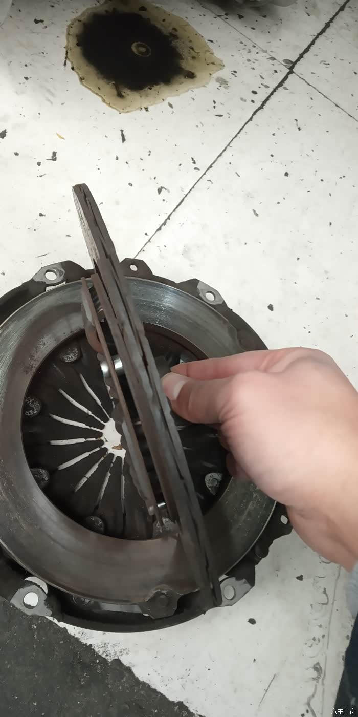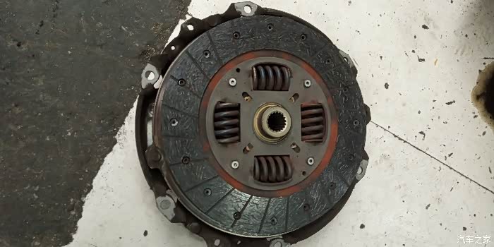 最近感觉离合器越来越重,抬离合发动机抖动厉害,一档加油和松油时左前有嗒一声异响,离合器半联动行很短,感觉要稍抬一点离合就全接合是的。以为离合快磨光了,拆下发现离合片磨损不是很厉,自己分析应该是离合压盘上弹片弹性不好了,离合开始接合点很低,新换的离合接合点高了很多。