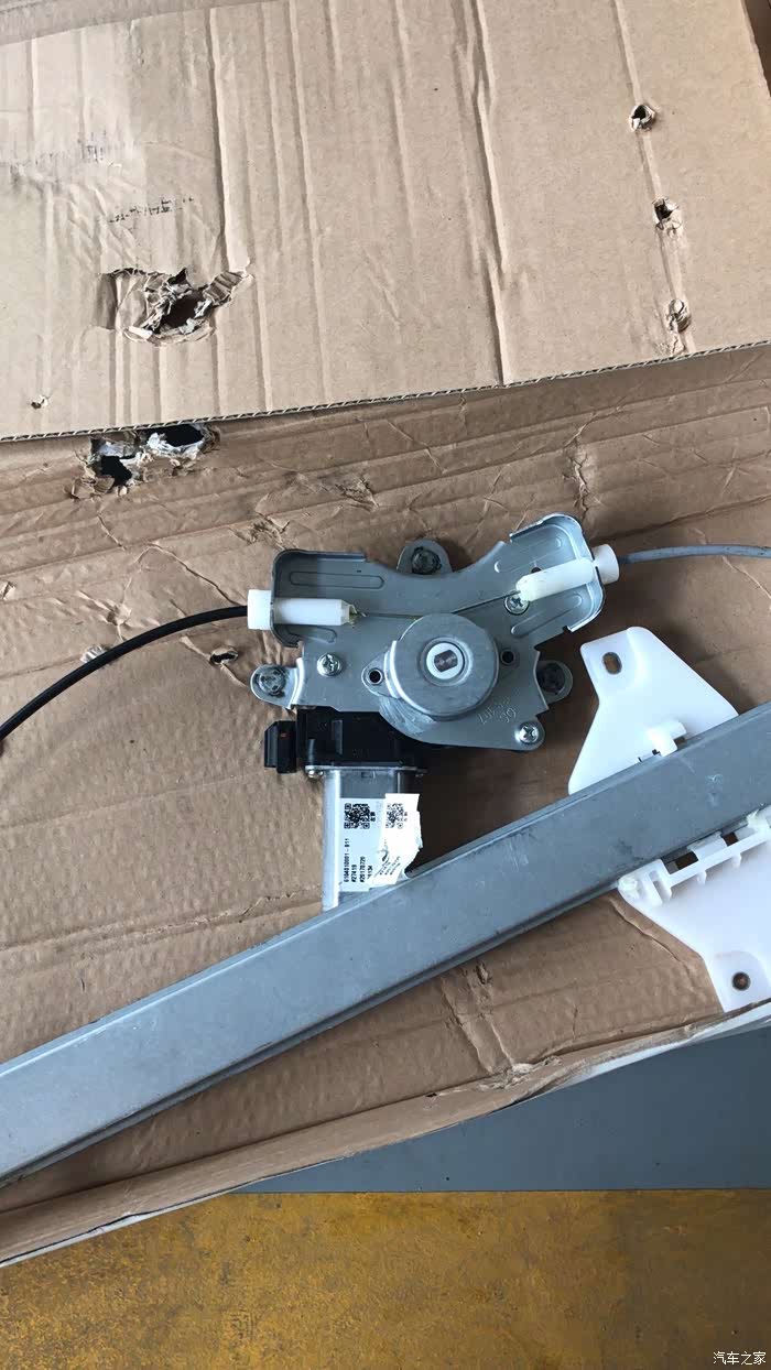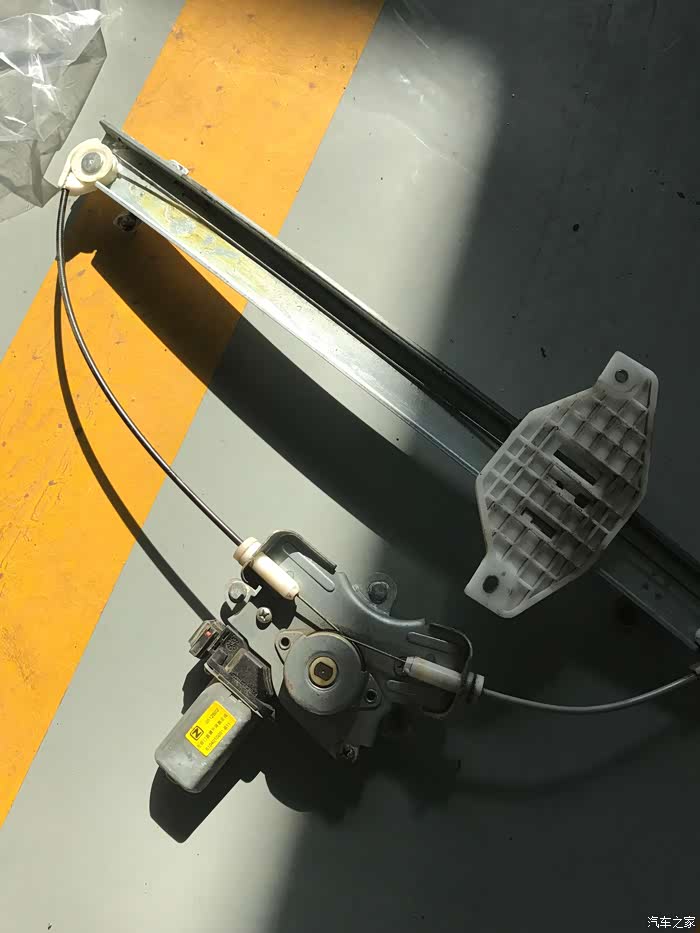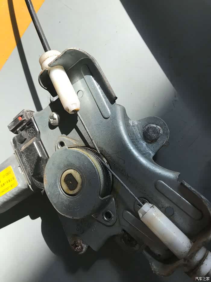 这个是刚拆下来的旧的,师傅跟我说是因为拉线这里出现了问题,才导致的玻璃降到底以后出现的异响
