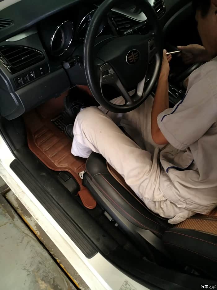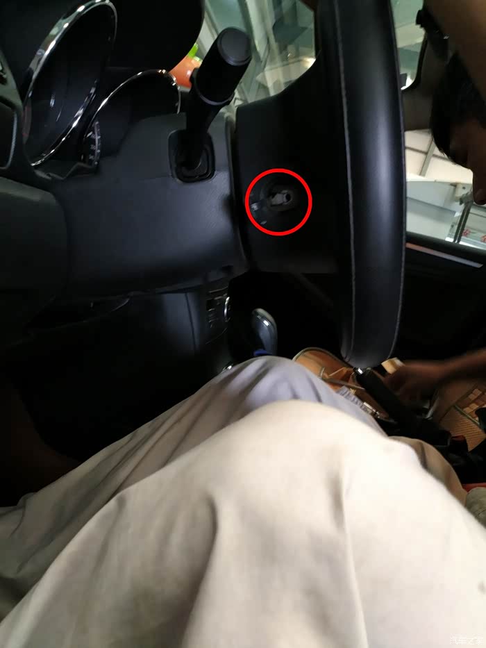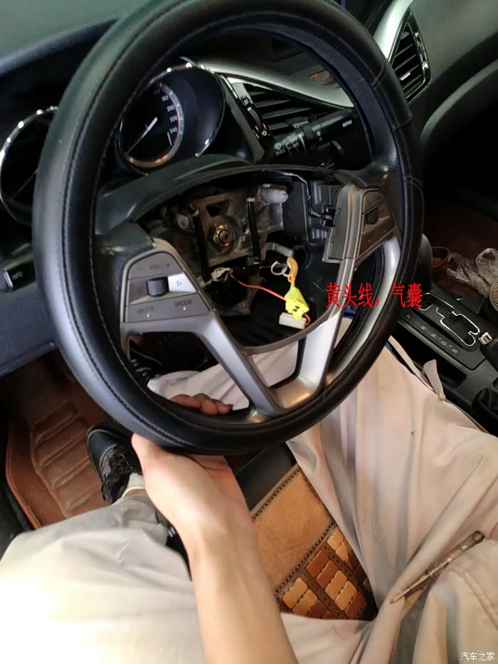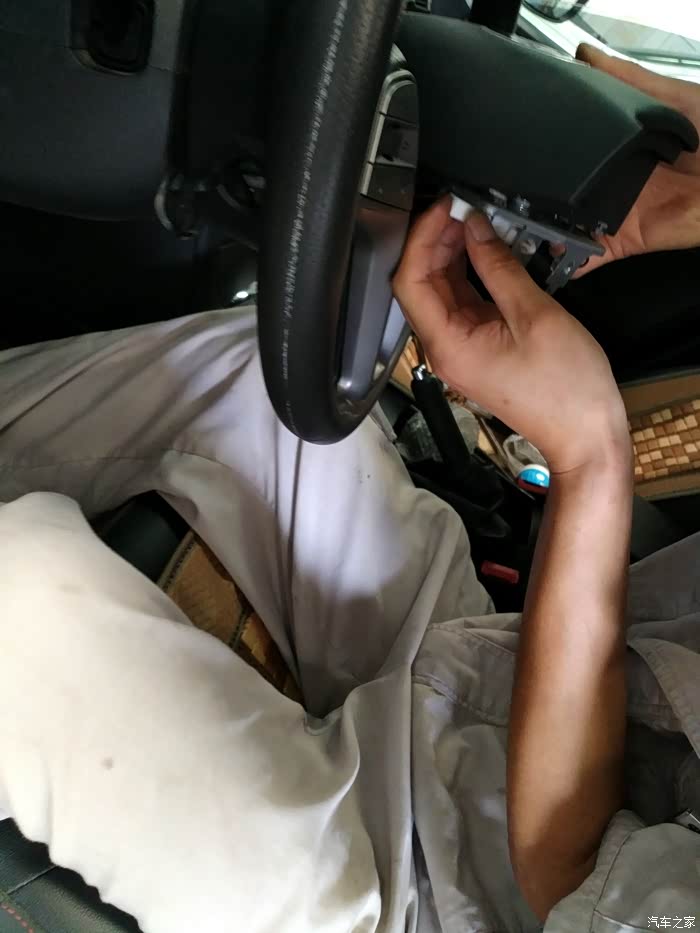 我的小车,稳当的停在维修工位上,先拍个照纪念下,待会就要开拆了。要点:此时方向盘一定要打正,要不回装时,方向盘没参考容易装歪了。