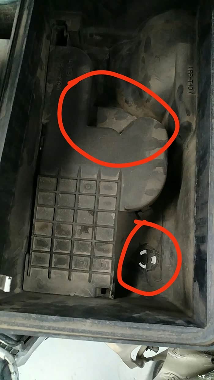 这张是空气滤盒去掉滤芯的特写,有两个进气位置,下方的那个其实是排水口,当然也可以进气。