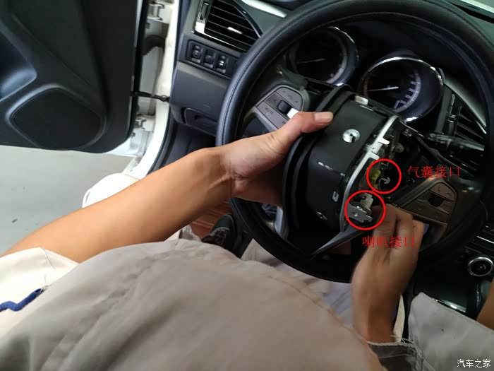 拆掉两个接口,分别是气囊和喇叭的,