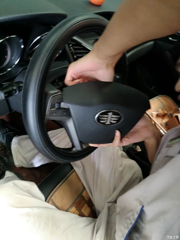 方向盘后方两侧有两个小圆盖,用一字螺丝刀可以撬开,里面是固定气囊的螺丝,撬开后把螺丝卸掉