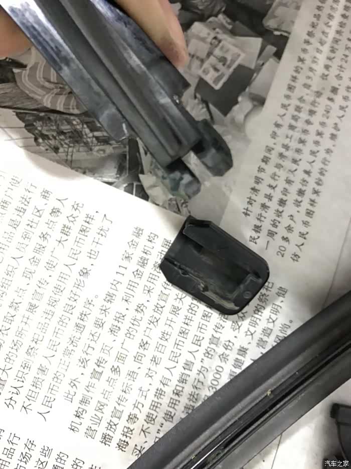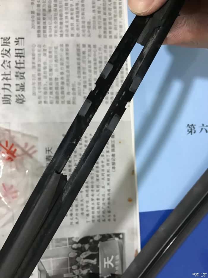 时间过的真快,转眼间 小4已经跟随我东奔西跑三年了,最近发现雨刷刮不干净了,中间总是有一条水印,起初以为是胶条下面卡了树叶或树枝类的杂物,掀起一看发现胶条老化了,接触玻璃那块都龟裂了,轻轻一扯就脱落了一块。看来是该换雨刷了。只换上面都胶条,一套才20不到,简直不能再便宜了。
