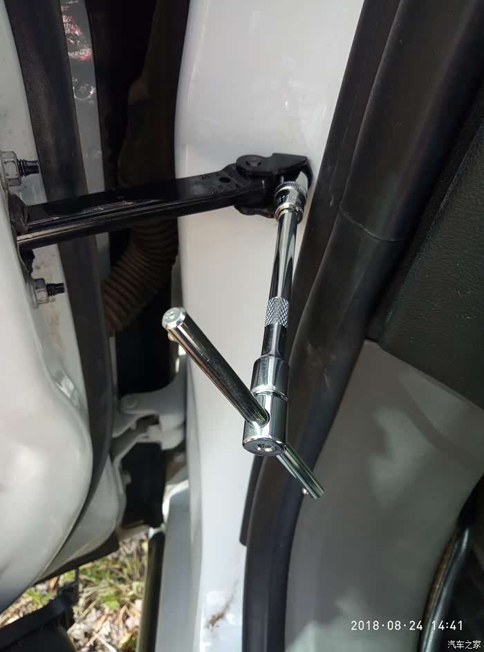 大宝正驾驶侧的车门限位器坏了有段时间了,一直将就没修理,因为不耽误开,就是开车门得把着点,要不就忽悠一下子。最近在网上自己买了限位器,网上一般都分两种价位,一种商家称作原厂的,一般都在一百左右,副厂的价位在几十元不等,我买的副厂的,四十元,今天腾出时间,自己鼓捣!朋友有修理厂,修车也很方便,但就是爱自己鼓捣!