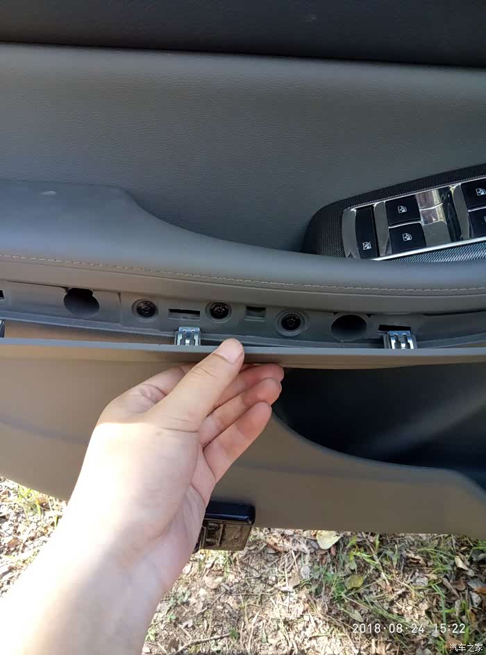 拆掉之后还要把门窗和门把手拉线的线束拔掉,都是插头的,拔掉就行