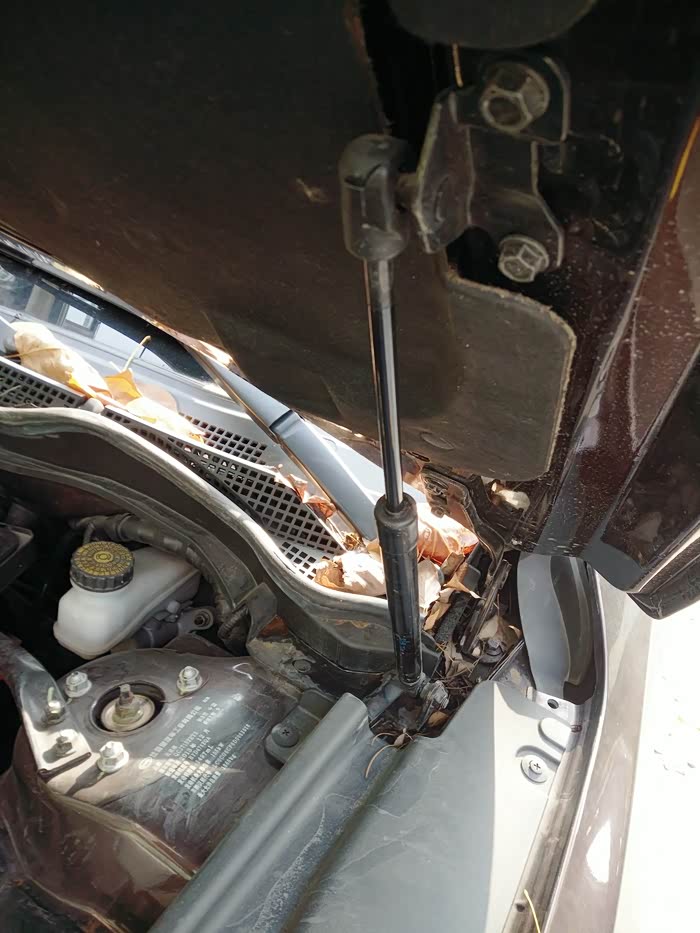 下次的维修任务,这个机盖顶杆没有支撑力了,盖子抬不起来了。换滤芯的过程我全程用脑袋顶着机盖子。下次换它。