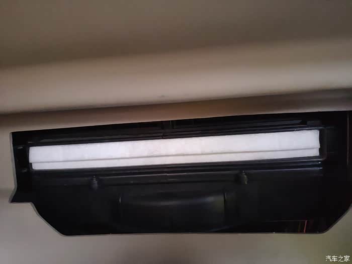 可以看见黑色的盒子里就是装的空调滤芯了