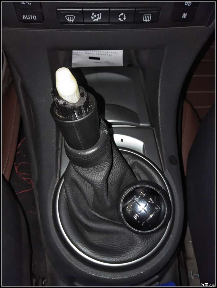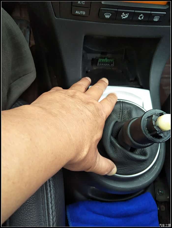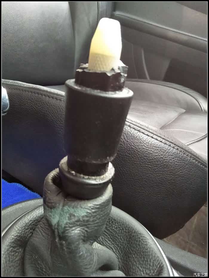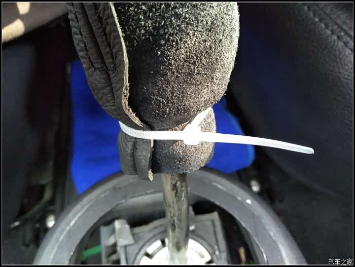 新的挡把头轻轻就压进排挡杆了,再把防尘罩往上提,扎带伺候。
