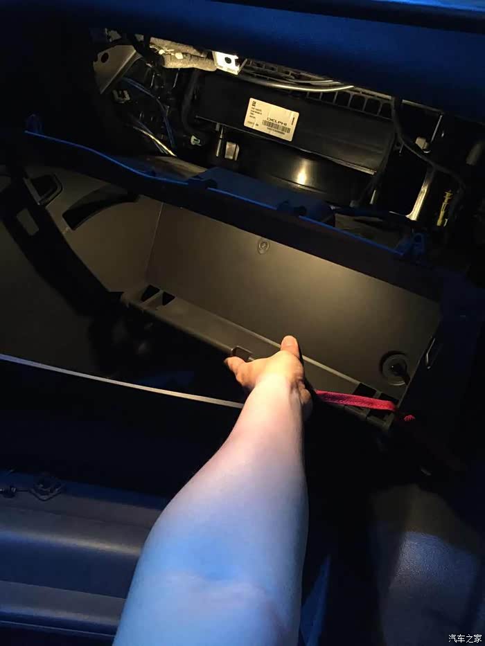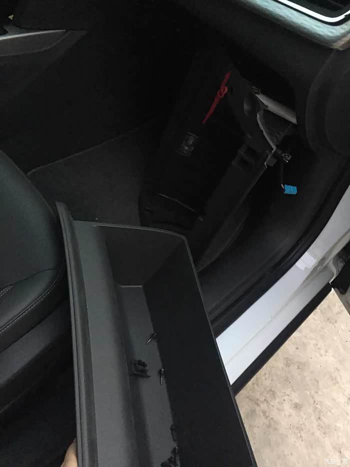 那么开始第一步是打开副驾驶的手套箱,把里面的东西拿出来。右边有个拉绳取下,这个和8代大宝是一样的,取下确实是不会缩进去很里面,但是也会缩,建议找东西固定吧。(忘记拍照,借用)