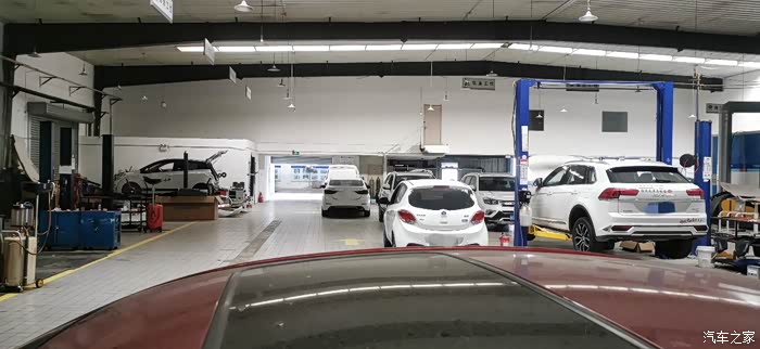 小逸进入车间一角。更换火花塞无需做举升,有个区域就好,不耽误其他车辆维保。