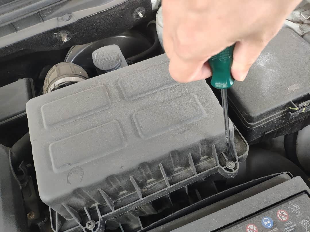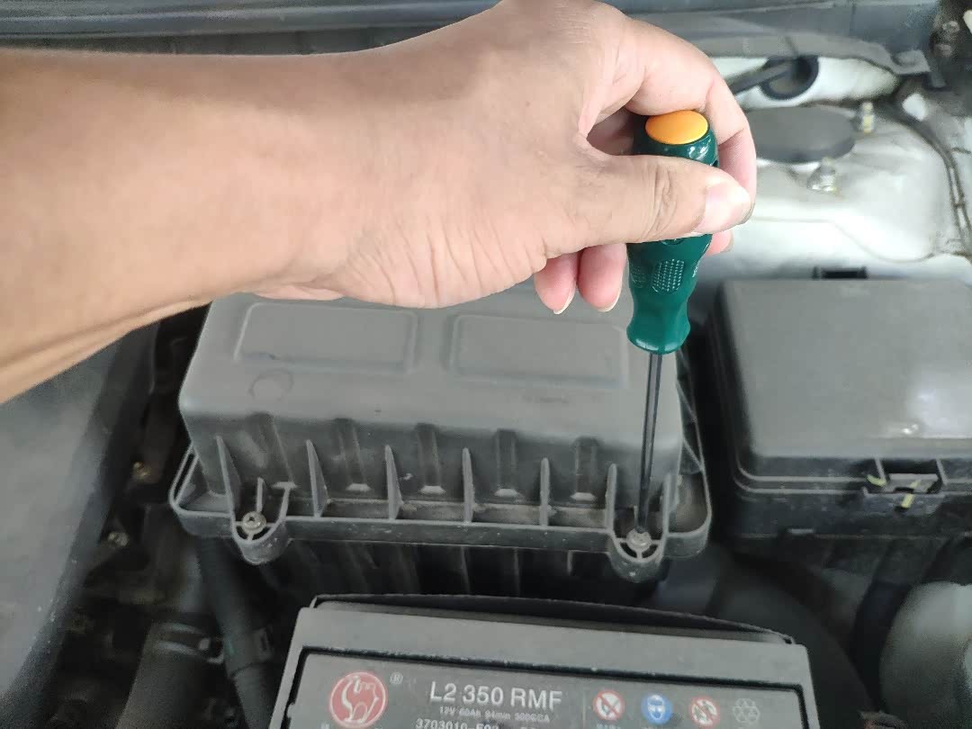 使用改刀松开空气滤芯盒子上的螺栓