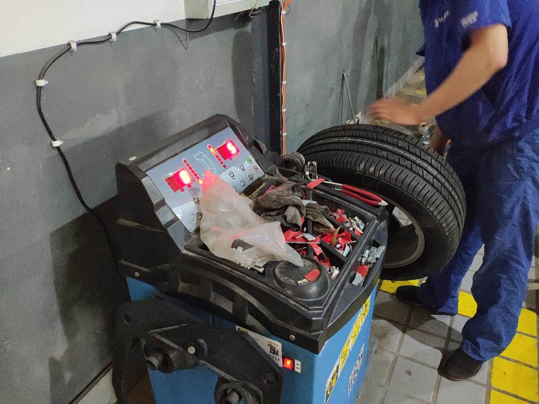 新轮胎换好后上动平衡,检查一圈转起来是否平稳