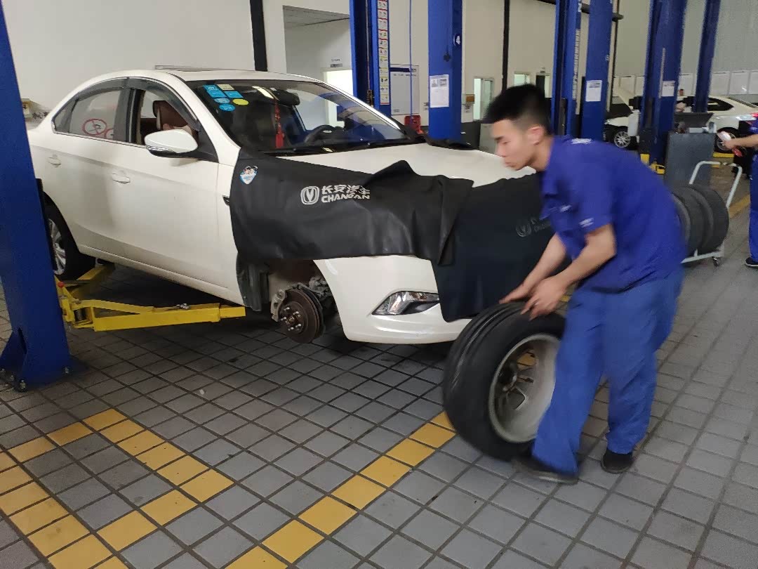最近在行车检查是发现了车前两个轮胎上有了较多的微小裂纹,有了较大的安全隐患,遂决定到4S店更换。我的小逸出厂轮胎是205/55/R16的玛吉斯,轮胎质量是非常好,正常轮胎四年就要更换了,而我的小逸五年多了,跑的公里数也不少,轮胎的胎纹现在都还很深,如果不是我的爱车停在露天停车场,估计还得坚持很久,由此可见长安车的质量是很好的。
