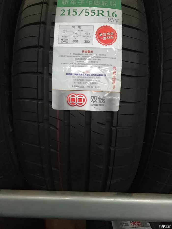 因为还要跑高速回杭州,随便找了条双钱215 55 R16的换上吧,后轮就凑活吧,胎纹好像也和SA37差不多