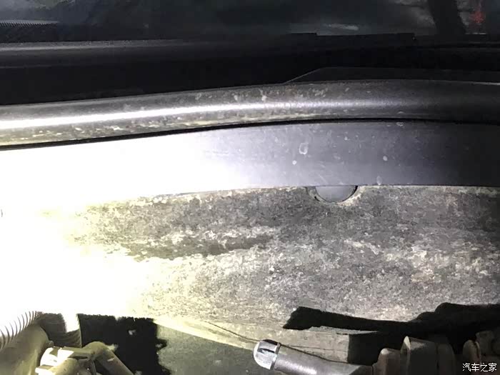 三个卡扣拽下来之后往外拽这边的隔音棉,之后就看到一个这个图中间的那个黑色的盖子, 往外拉这个盖子。之后就看到了里面旧的空调滤。