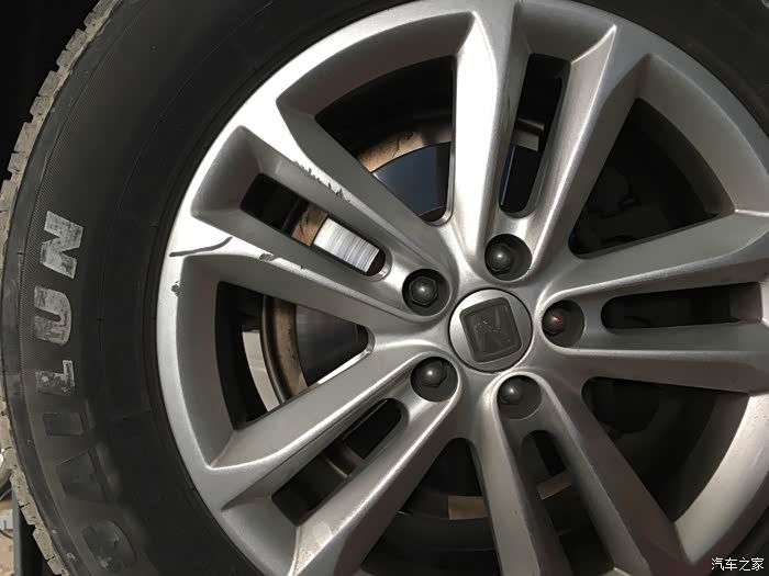 看看我受伤的前轮毂,上次不小心擦到石头啦
