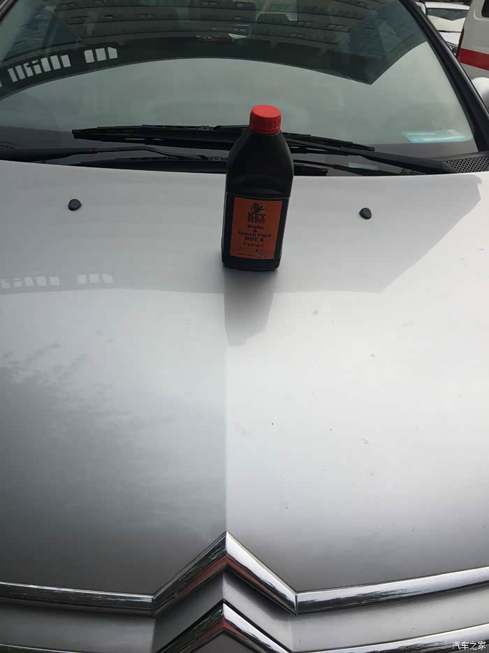 昨天上午趁阴天,不是太热,开车去修理厂更换。到了厂子换油前先给刹车油和车合个影。