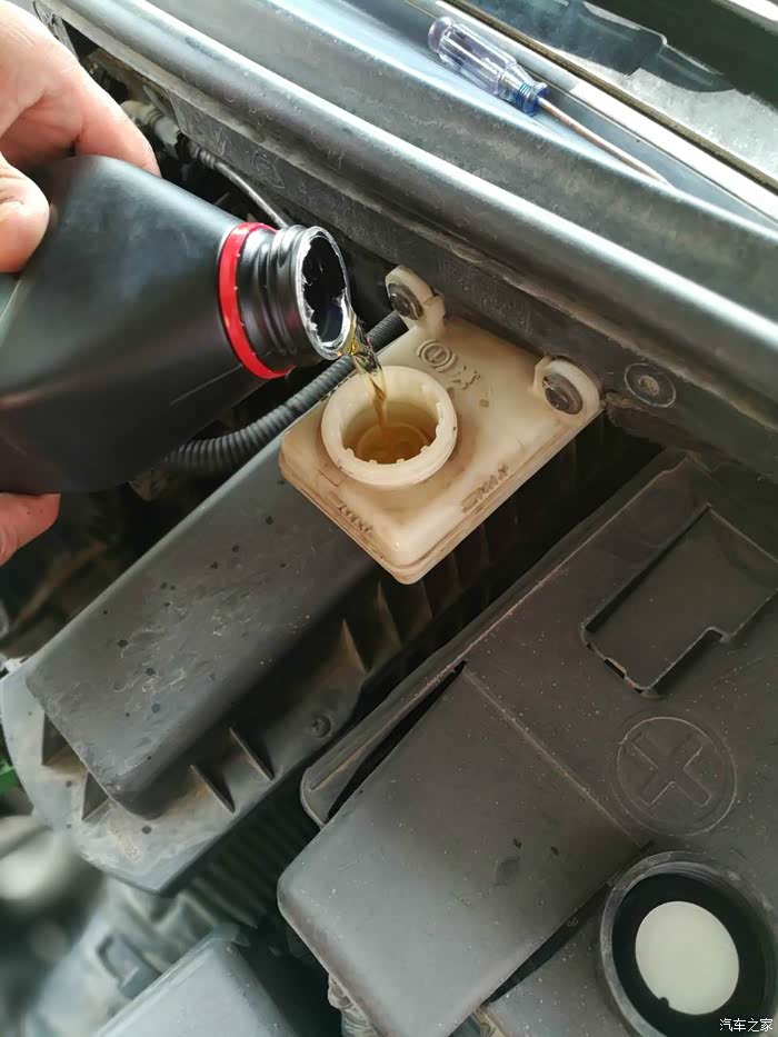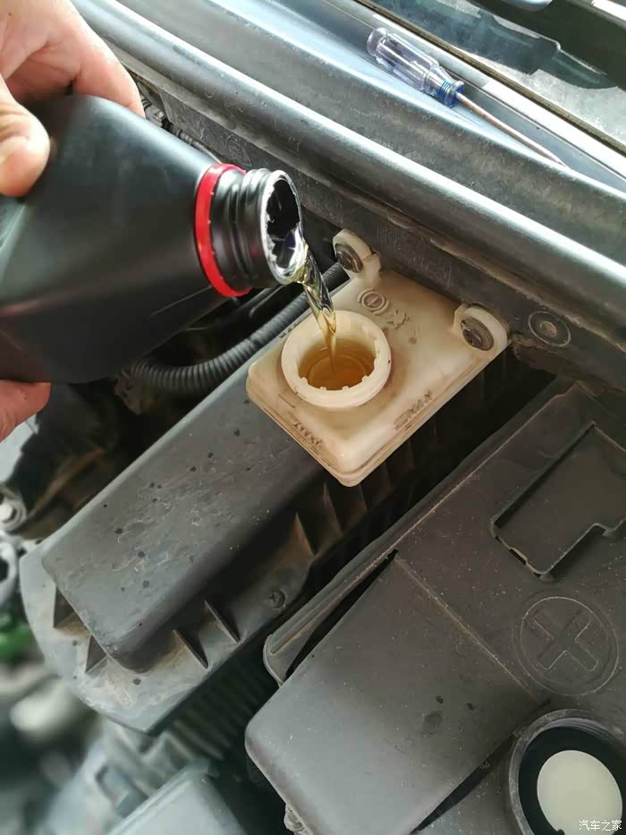 开始添加新的刹车油,