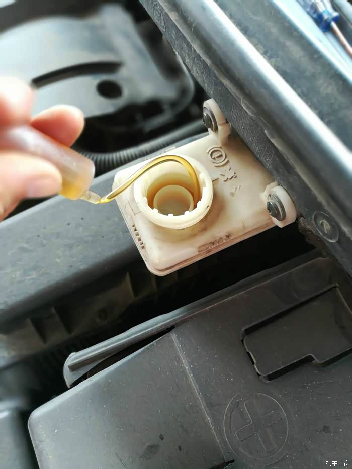 打开刹车油的盖子,看了看里面,居然有杂质,怎么进去的,哪来的啊