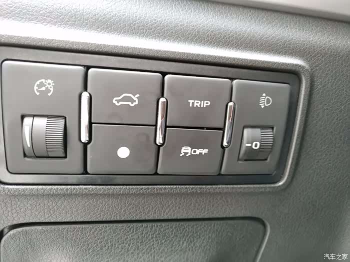 从左到右,仪表盘的灯光亮度,后备箱(这个应该用的多),TRIP是切换界面,上高速可以先看看轮胎胎压,底下那个好像是EPS还是ESC鬼的,不要关就对了。最右边大灯高低,大家伙应该都是调最高,据老司机说雾天要调低一点(- -新手雾天别开车最好,命要紧啊)